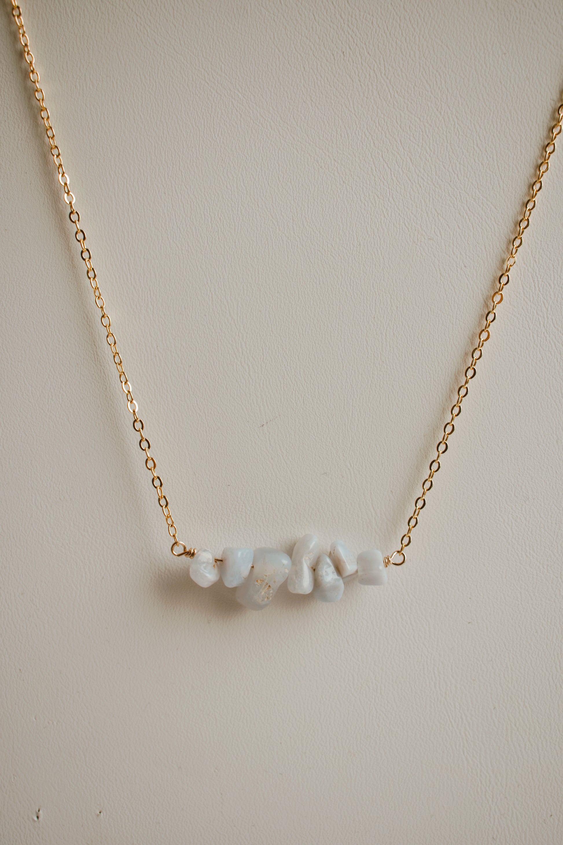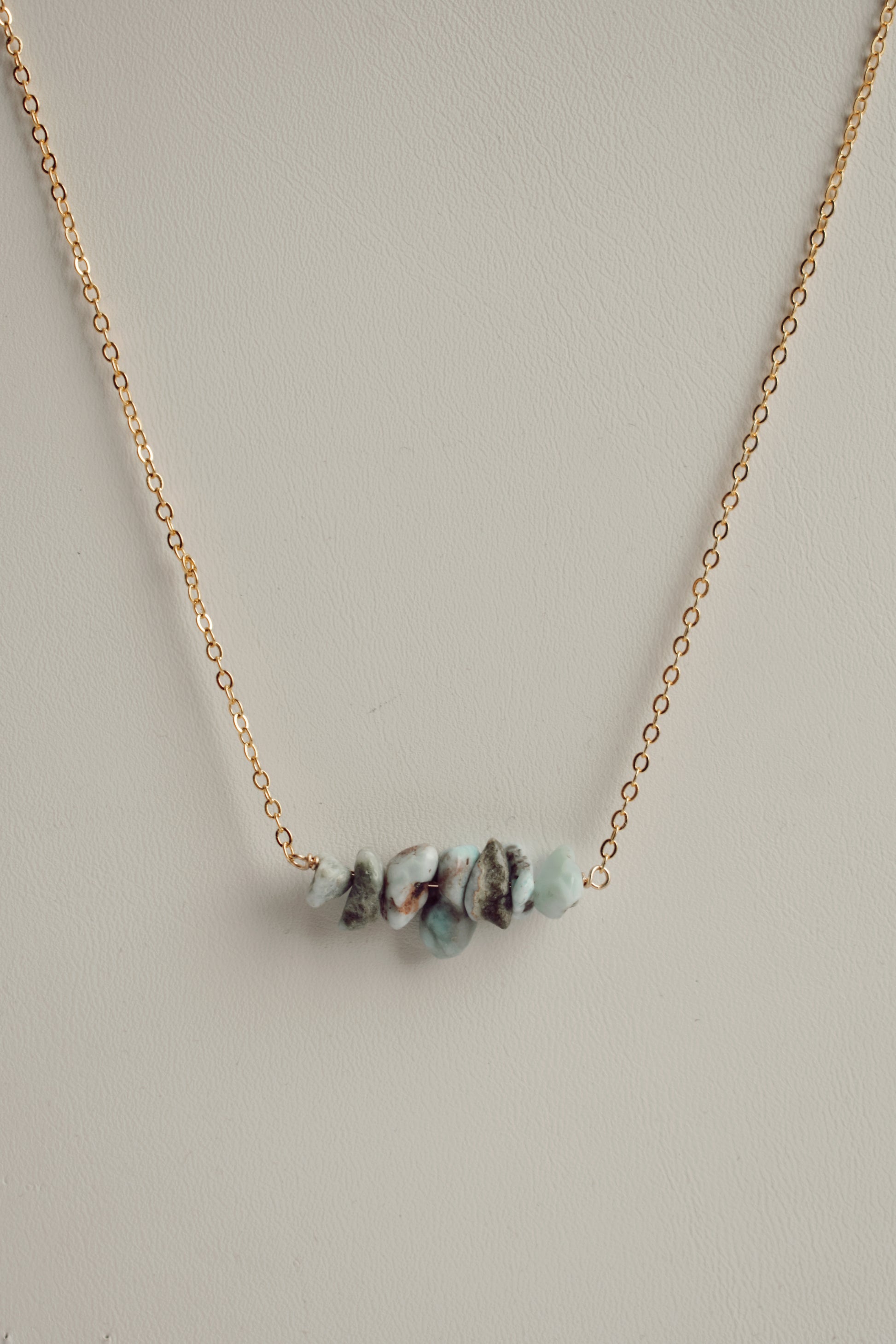 Introducing the versatile chippy necklace - a true embodiment of simplicity and beauty. This statement piece features seven hand-wired semi-precious stone chips on a luxurious gold-plated chain, exuding charm and positive vibes. Each stone has been thoughtfully chosen for its unique energy and symbolism, making the necklace perfect for expressing your individuality. And with its delicate design and high-quality materials, it will effortlessly elevate any outfit. It's perfect to wear on it's own or layered with other necklaces.