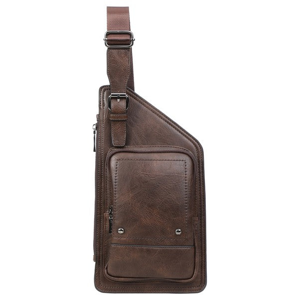 Calling all daring divas: make a bold statement with the chic and sleek Metro Sling Bag. This vegan leather sling backpack is more than just another accessory - with its contemporary, edgy design and silver-tone hardware, it’ll turn heads wherever you go. Plus, it offers a zip top closure to keep your essentials safe, and its adjustable shoulder strap will keep you comfortable all day long. Look stylish and confident no matter where you’re headed - take the Metro Sling Bag with you!