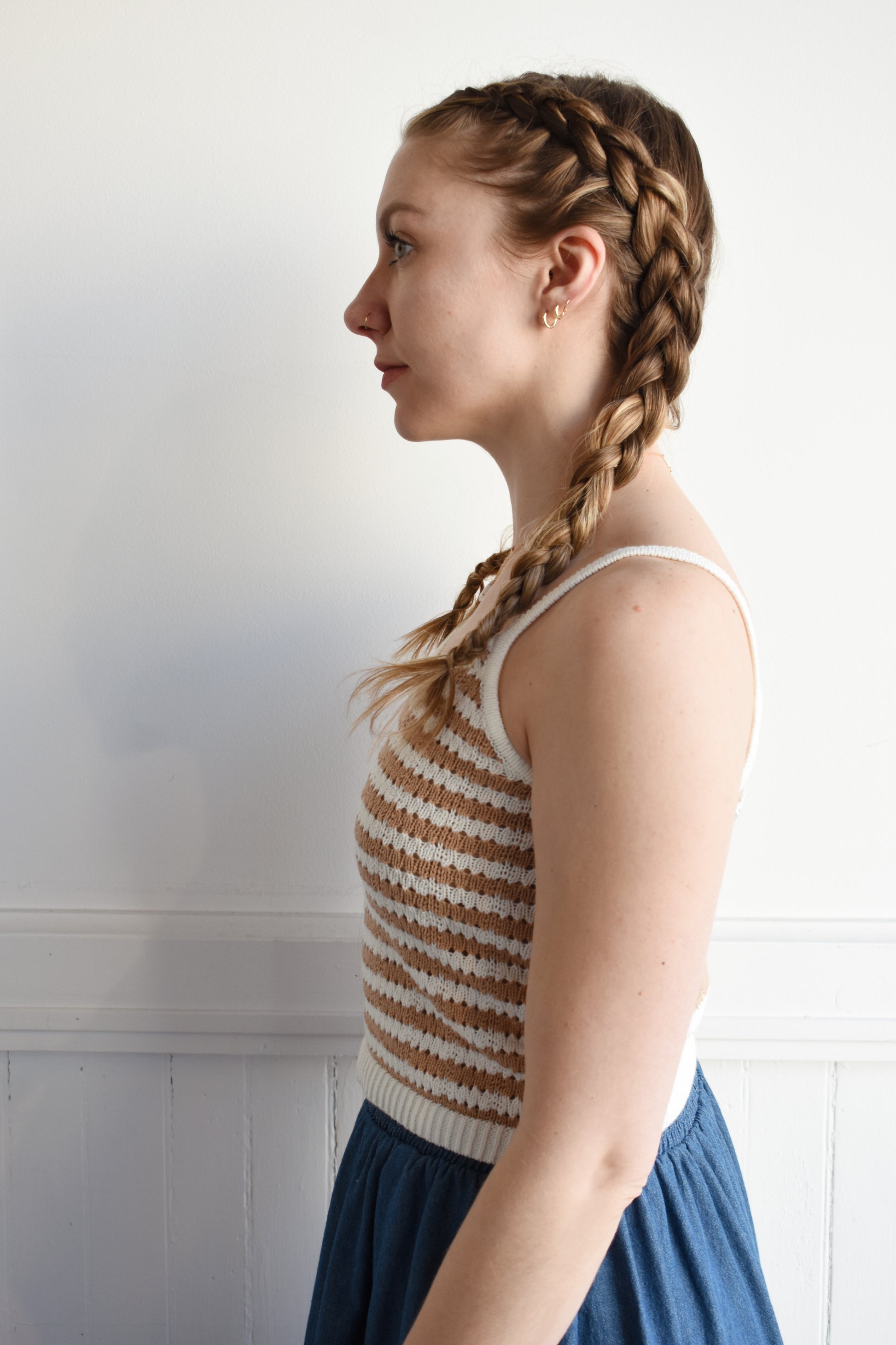 Elevate your wardrobe with this charming crocheted tank featuring classic stripes and delicate spaghetti straps. The cropped silhouette flatters your figure while the handcrafted crochet texture adds effortless sophistication to any outfit. Perfect for layering or wearing solo, this versatile piece transitions seamlessly from casual days to evening looks.