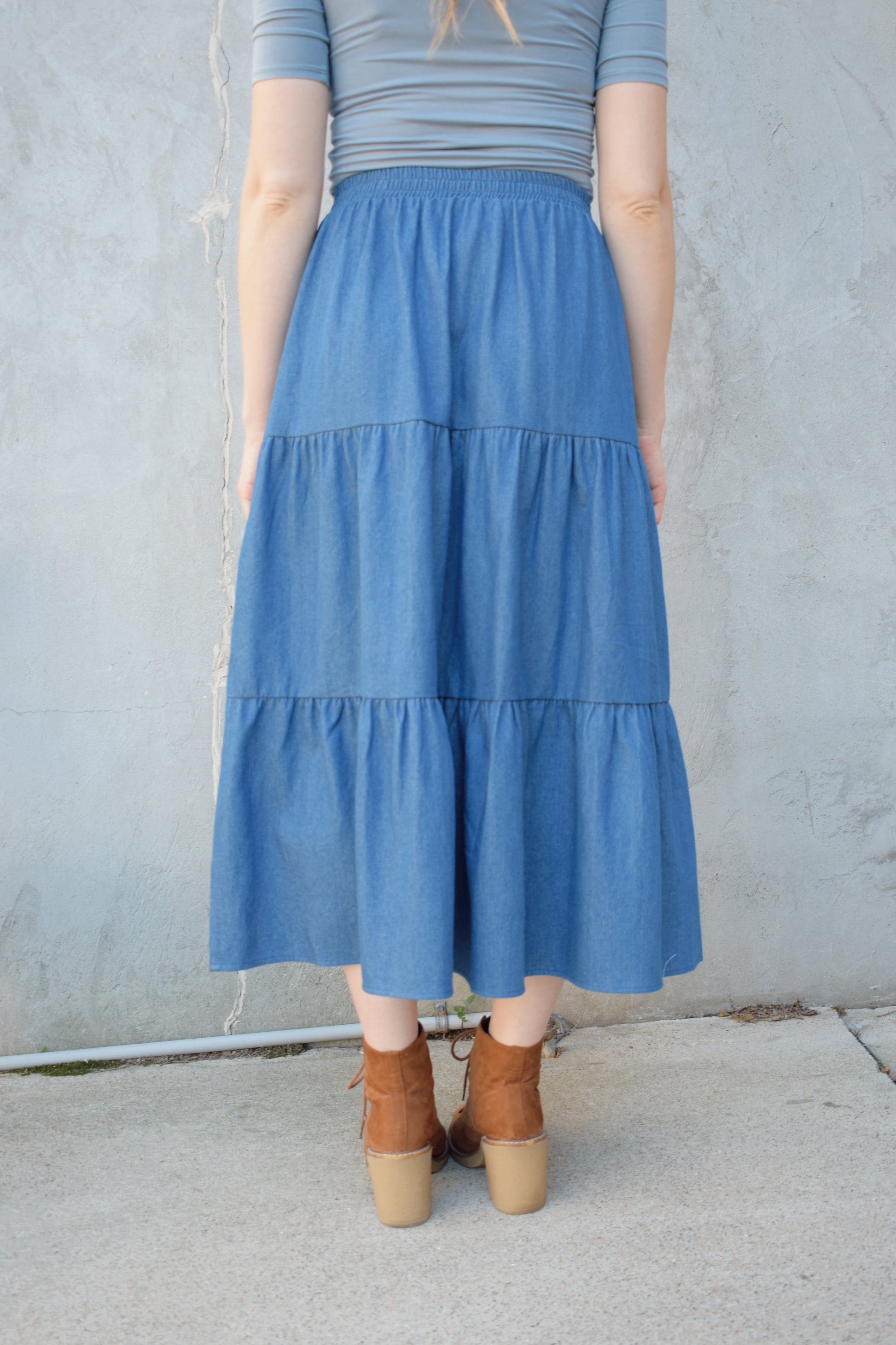 tiered denim skirt