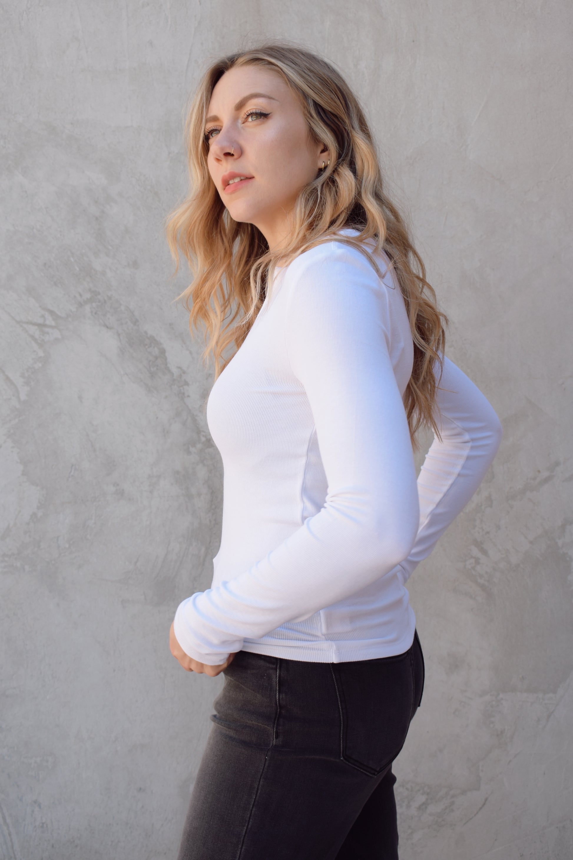 Experience ultimate comfort with our ultra-soft long sleeve tee, featuring a stylish notched neckline. This slim-fit long sleeve tee offers gentle stretch for a flattering shape, making it a versatile essential for casual, classic looks.