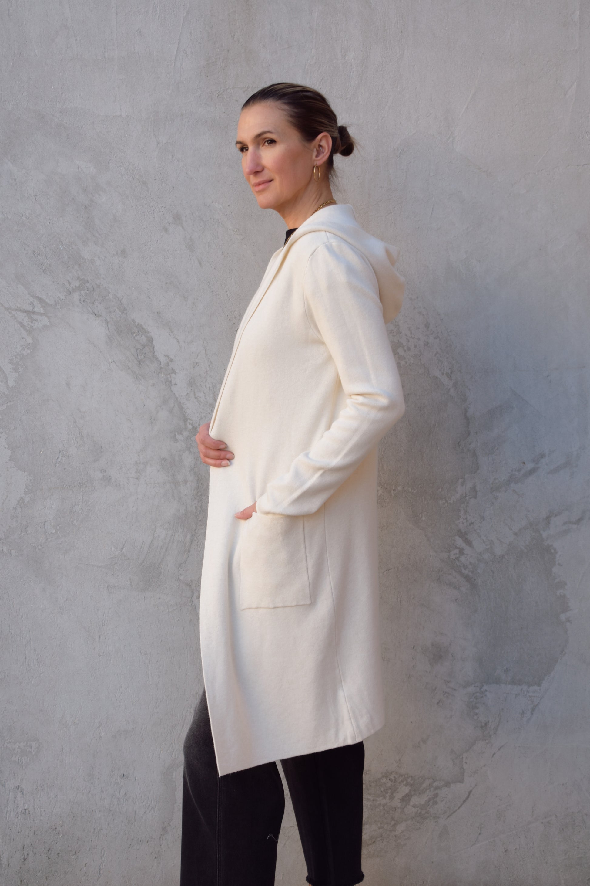 Effortlessly layer this open knit cardigan for an instantly polished look. The relaxed silhouette features a convenient hooded design and functional front pockets—perfect for those moments when you want comfort without compromising style. Throw it on over anything for an undeniably chic finishing touch.