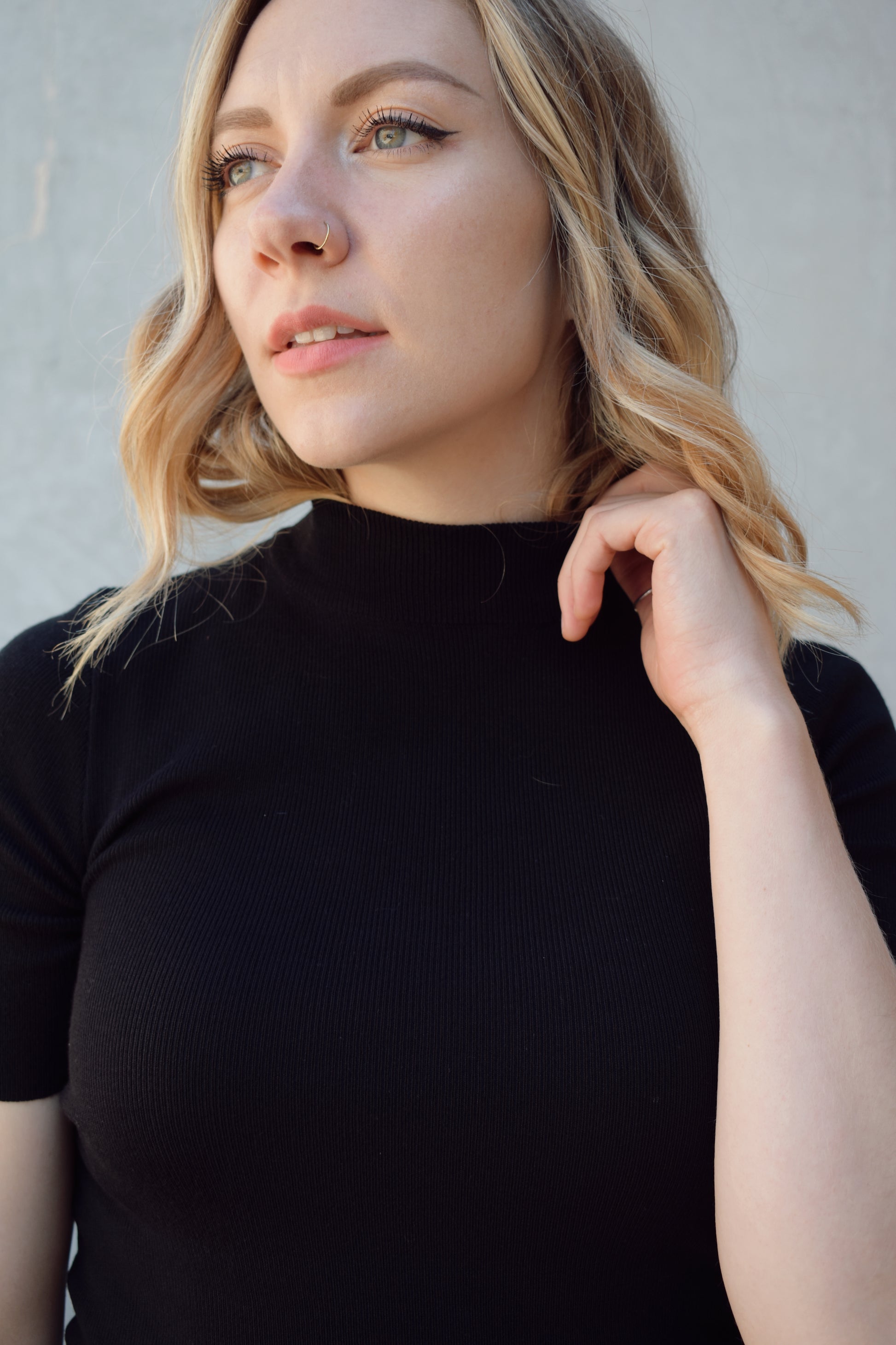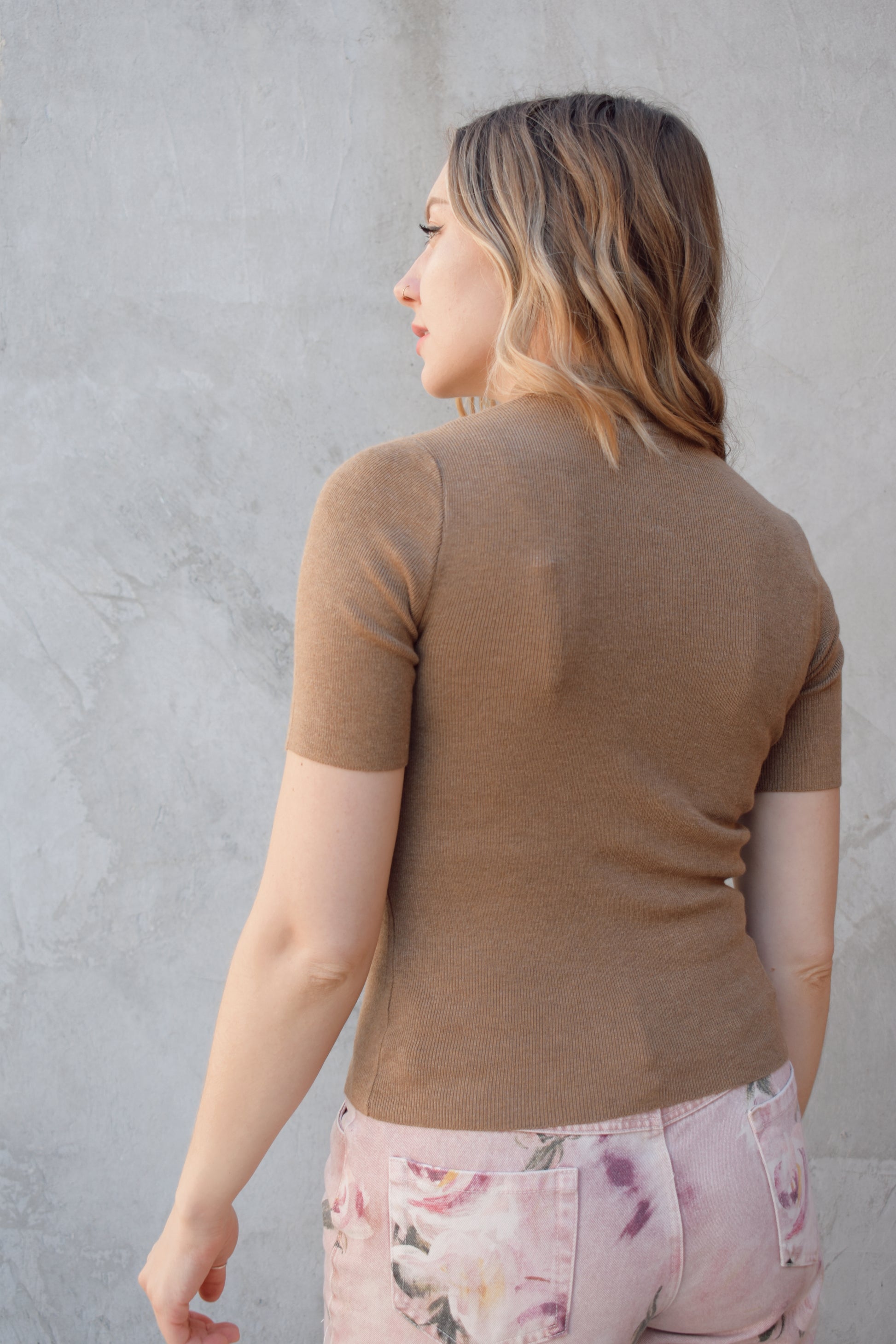 This ribbed knit top features short sleeves and a mock neckline, designed with stretch for a form-fitting silhouette. Perfect for fall and winter, it serves as a versatile layering essential that elevates your wardrobe basics.
